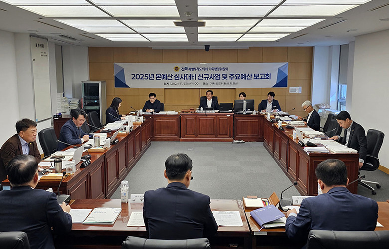 [전북특별자치도의회=세계타임즈 이상호 기자] 전북특별자치도의회 기획행정위원회(위원장 최형열)는 5일 위원회 회의실에서 2025년도 본예산안 심사를 대비하기 위해 신규사업 및 주요예산 보고회를 개최했다.