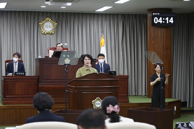 이에 강경숙 의원은 “침수로 인한 상습 피해 지역에 대한 집행부의 대책 수립을 기대했지만, 아직도 대안을 찾지 못하고 있다”고 질타하며,“조속히 농·배수로 정비 방안을 모색하여 집중 호우로 인해 상습적으로 피해를 입는 농가 구제에 나서야 한다”고 지적했다.