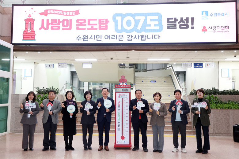 [수원시 세계타임즈=송민수 기자] 수원특례시의회(의장 이재식)는 2월 5일, 시청 본관 1층 로비에서 열린 ‘사랑의 온도탑’ 폐막식에 참석해 시민과 함께한 나눔의 의미를 되새겼다.
