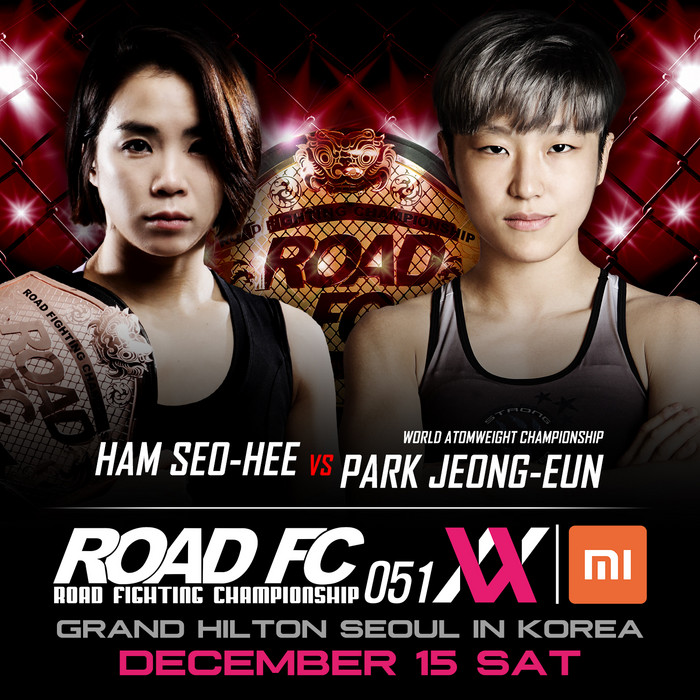 한편 ROAD FC는 12월 15일 그랜드 힐튼 서울에서 XIAOMI ROAD FC 051이 끝난 뒤 여성부리그 XIAOMI ROAD FC 051 XX를 연이어 개최한다. 메인 이벤트로 세계랭킹 1위의 ROAD FC 아톰급 챔피언 함서희와 ‘몬스터 울프’ 박정은의 타이틀전이 확정돼 아톰급 챔피언을 가린다. 대회가 모두 끝난 뒤에는 시상식과 함께 송년의 밤 행사가 준비되어 있다.