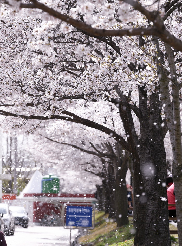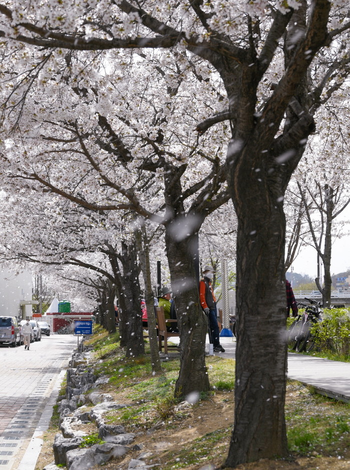 [오산시=세계타임즈 이영진 기자] 완연한 봄 날씨를 보이는 2일 오산천에 흐드러지게 핀 벚꽃이 만개했다.