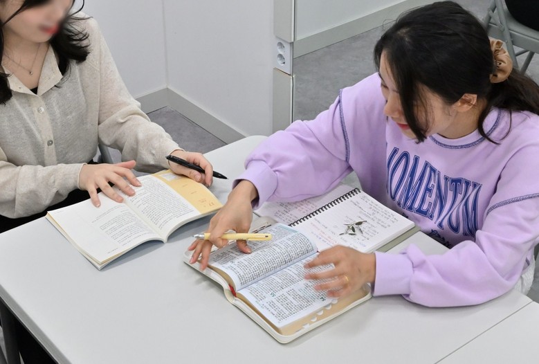 | ▲ 신천지 바돌로매지파 성도들이 성경을 찾아보며 묵상집으로 이야기를 나누고 있다 |