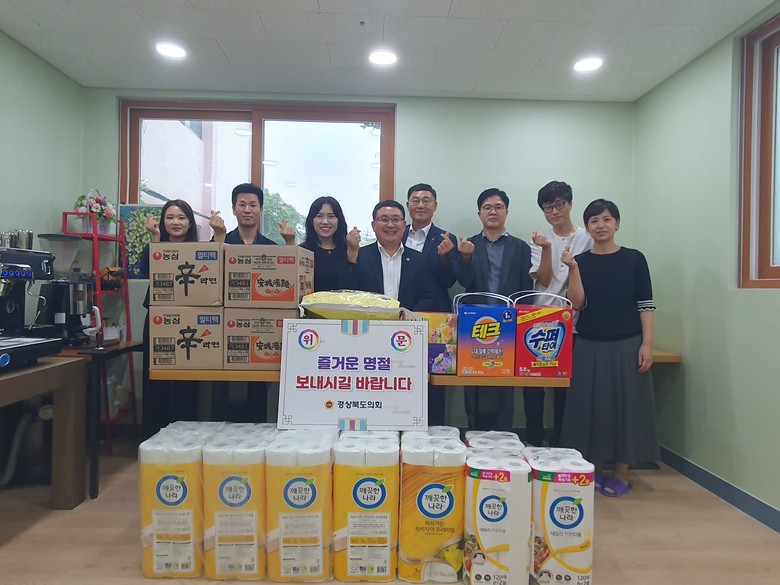 [경북 세계타임즈=한성국 기자] 경상북도의회는 추석을 맞아 도의회를 대표하여 임병하 도의원(영주)과 직원들이 9월 20일(수)에 영주장애인단기보호센터(시설장 박명숙)를 방문하고 도의회에서 준비한 위문품을 전달했다.