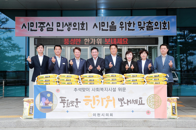 박명서 의장은 “임금님표 이천쌀은 그 자체로 풍요와 정성을 상징한다”며, “이번 추석, 한 톨의 쌀이 모여 풍성한 밥상이 완성되듯, 시민 모두의 마음이 어우러져 더 따뜻한 이천이 되기를 소망한다”고 전했다.