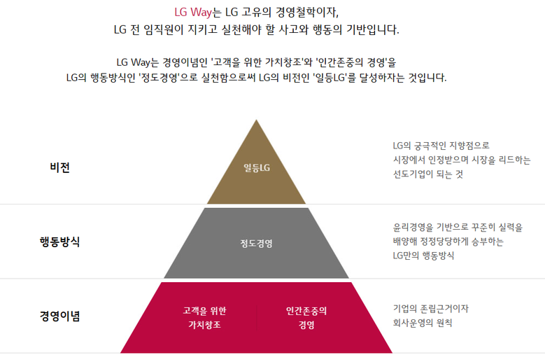 | ▲사진 : LG Way LG 고유의 경영철학이자, LG 전 임직원이 지키고 실천해야 할 사고와 행동의 기반 |