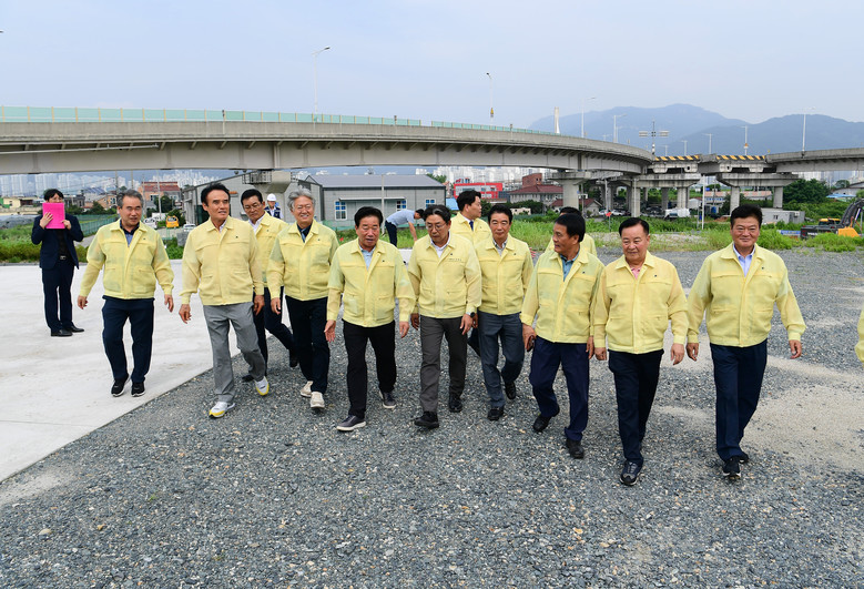 이후 의장단은 김해 초정~화명간 광역도로 건설현장을 방문해 김해시 김치성 시민안전국장의 추진현황을 보고 받은 후 현장을 점검했다. 김 의장은 “초정~화명간 광역도로 김해구간 착공으로 차량정체 문제가 해소되고, 기업체 물류비용이 절감되어 지역 활성화가 기대되며 앞으로도 도민의 생활편리를 위해 착공까지 최선을 다해줄 것”을 주문했다.