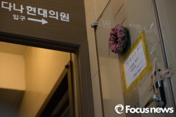 | △ 지난 20일 오후 서울 양천구 다나의원에서 C형간염 바이러스가 발생해 병원 입구가 폐쇄돼 있다. <사진제공=포커스뉴스> |
