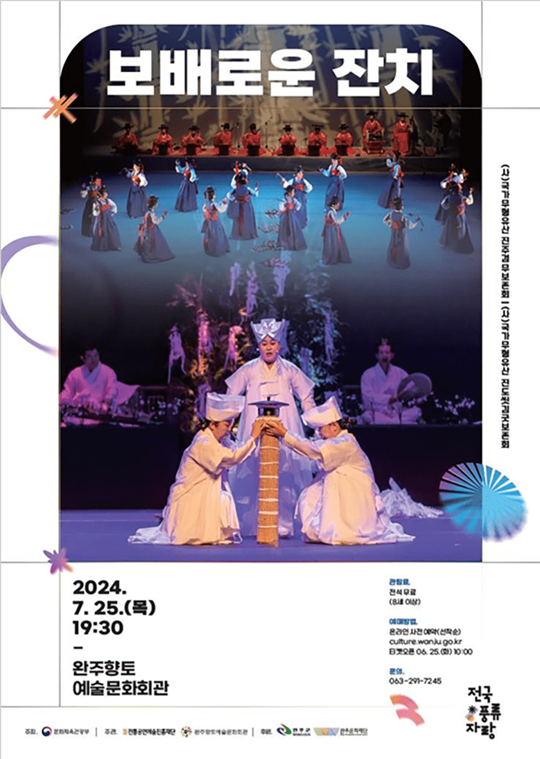 ‘2024전국풍류자랑’ 공연정보와 티켓 예매는 완주문화예술 홈페이지(culture.wanju.go.kr)를 통해 가능하며, 전석 무료이다.
