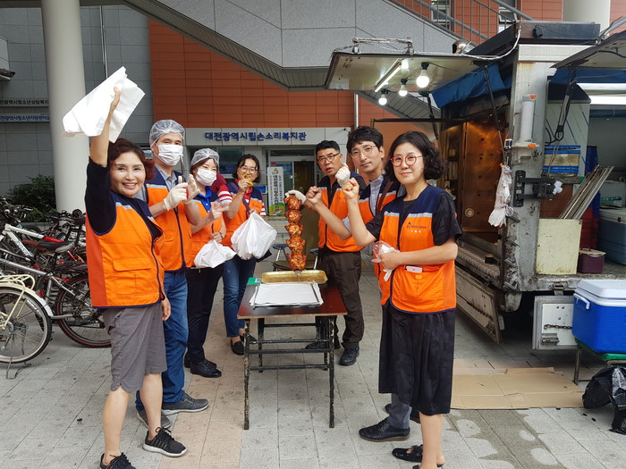 손소리복지관 유형걸 관장은 “오늘 사랑의 사다리 밴드 봉사단체에서 바비큐통닭을 지원해주셔서 큰 힘과 위안이 된다.”면서 감사함을 전했다.