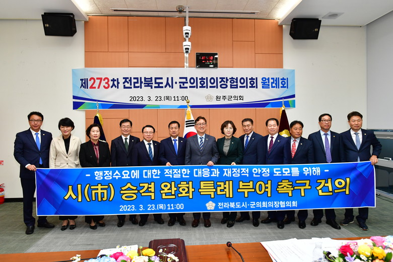 서 의장은 “특히, 수소특화 국가산업 단지 선정을 통해 완주군의 성장이 이미 예견되는 만큼, 완주군과 같이 지속적이 개발이 이뤄지는 지역에 대한 시(市)승격이 빨라 진다면, 지역발전에 가속도가 붙을 것”이라고 덧붙였다.