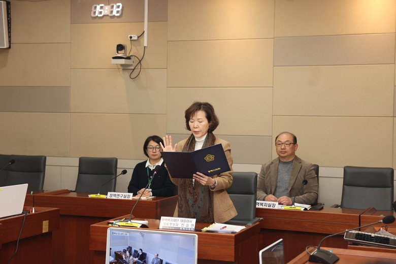 김산수 위원장은 “이번 인사청문회는 임용후보자의 직무 수행 능력을 검증하고 인사의 투명성과 공정성을 확보하기 위해 실시하게 된 것”이라고말하며, “복지재단 대표이사는 평택시민 누구도 소외받지 않도록 촘촘한 복지 서비스를 제공하는 데 중추적인 역할을 담당하는 막중한 자리”라고 강조했다. 이어“위원님들께서 심도 있는 질의를 통해 임용후보자의 경영 능력과 직무 수행 능력 등을 충분히 검증할 수 있게 되어 감사하다”고 덧붙였다.