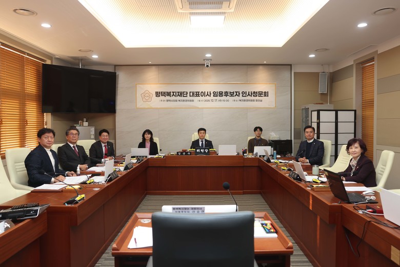 [평택시 세계타임즈=송민수 기자] 평택시의회는 12월 17일, 복지환경위원회 회의실에서 평택시복지재단 대표이사 임용후보자에 대한 인사청문회를 실시했다.