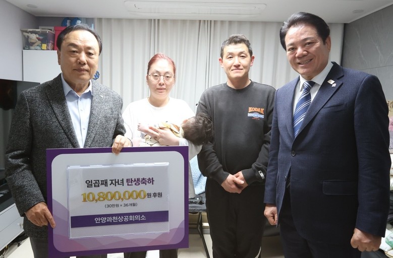 [안양시 세계타임즈=송민수 기자] 안양시(시장 최대호)와 안양과천상공회의소(회장 배해동)는 지난해 말 세쌍둥이를 출산한 동안구의 한 가정과 일곱째 자녀를 출산한 만안구의 한 가정을 축하 방문했다.