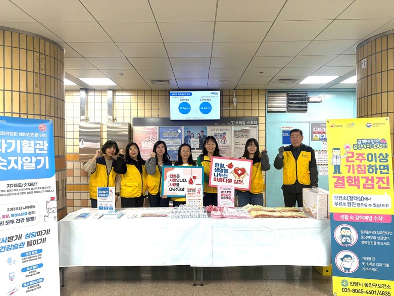 동안구보건소는 24일 범계역사 내에서 ‘기침=신호, 검진=보호, 치료=야호’ 등 다양한 슬로건을 내걸고 대시민 홍보를 펼쳤다. 보건소는 결핵 조기 발견의 중요성뿐만 아니라 에이즈 예방, 올바른 손 씻기, 심뇌혈관질환 관리, 헌혈 동참 등 다양한 감염병 및 만성질환 예방 정보를 통합적으로 안내했다.