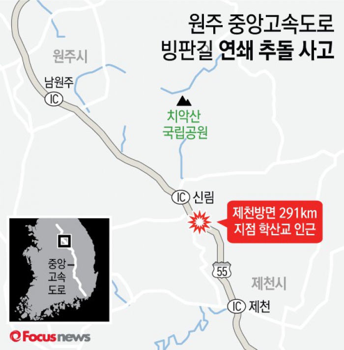 | △ [그래픽] 원주 중앙고속도로 빙판길 연쇄 추돌 사고 |