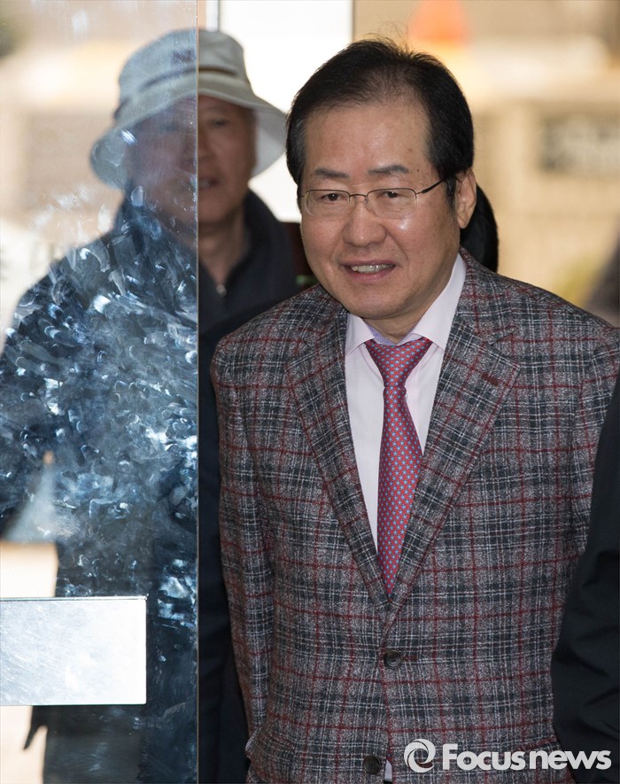 (서울=포커스뉴스) 18일 오전 서울 서초구 서울중앙지방법원에서 고(故) 성완종 전 경남기업 회장으로부터 불법 정치자금을 받은 혐의로 기소된 홍준표(62) 경남도지사가 4차 공판에 출석하고 있다.