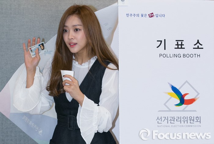 (서울=포커스뉴스) 20대 총선을 닷새 앞두고 사전투표가 이틀동안 실시되는 8일 오후 서울 강남구 청담동주민센터에 마련된 사전투표소에서 배우 조보아가 투표를 하고 있다.