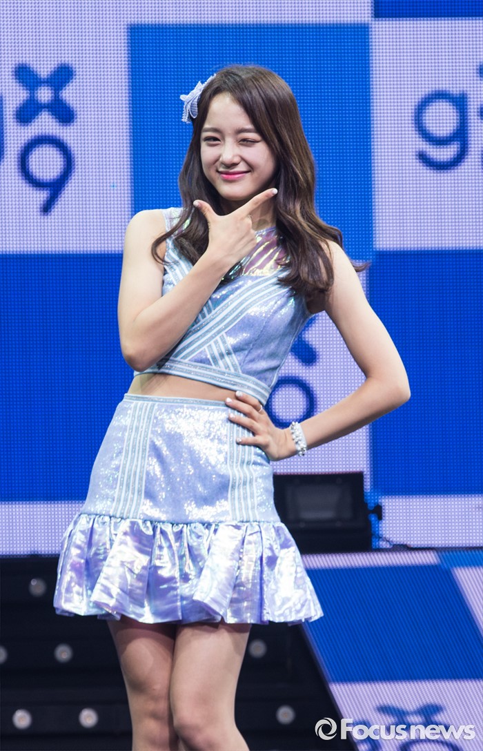 (서울=포커스뉴스) 28일 오후 서울 광진구 예스24 라이브홀에서 열린 걸그룹 구구단의 데뷔 쇼케이스에 참여한 멤버 세정이 포토타임을 갖고 있다.