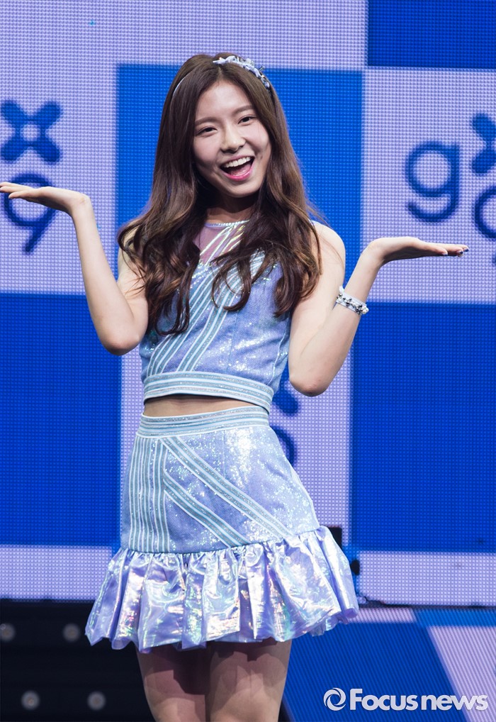 (서울=포커스뉴스) 28일 오후 서울 광진구 예스24 라이브홀에서 열린 걸그룹 구구단의 데뷔 쇼케이스에 참여한 멤버 나영이 포토타임을 갖고 있다.
