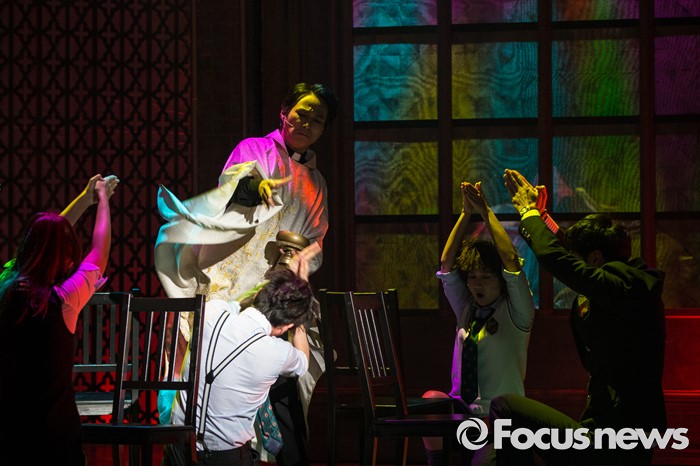 (서울=포커스뉴스) 5일 오후 서울 종로구 두산아트센터에서 열린 베어 더 뮤지컬 프레스콜에 참석한 배우들이 공연 하이라이트 시연을 하고 있다.