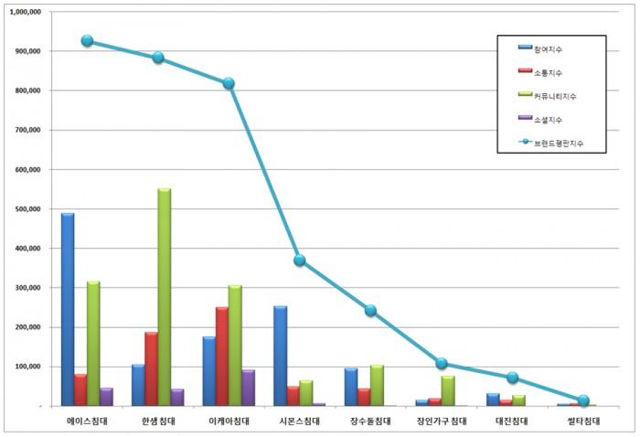 한국기업평판연구소가 지난달 4일부터 이달 5일까지 침대 가구회사 8개 브랜드의 빅데이터 342만8150개를 분석한 결과 이같이 조사됐다고 7일 밝혔다.