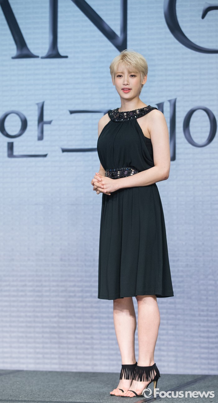 (서울=포커스뉴스) 11일 오후 서울 종로구 포시즌스호텔 서울에서 열린 뮤지컬 '도리안 그레이' 제작발표회에 참석한 배우 홍서영이 포토타임을 갖고 있다.