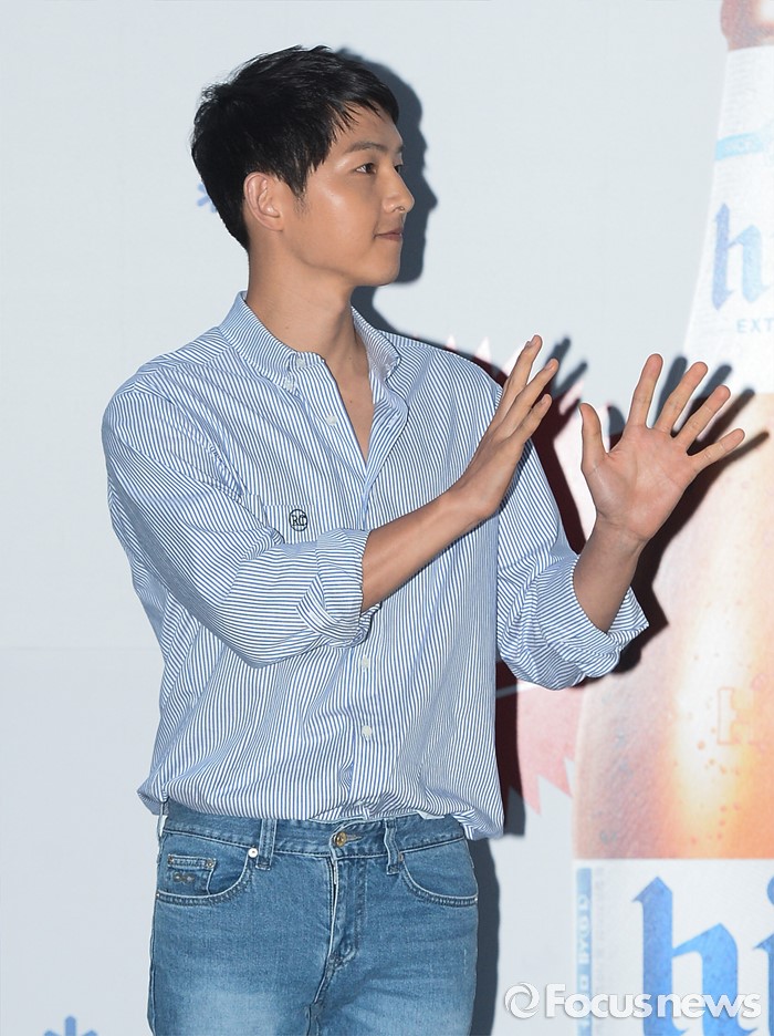 (서울=포커스뉴스) 14일 오후 서울 서대문구 신촌 일대에서 열린 '제2회 신촌맥주축제'에 참석한 배우 송중기가 포즈를 취하고 있다.