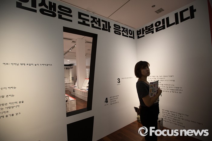(서울=포커스뉴스) 28일 오후 서울 용산구 국립한글박물관에서 열린 기획특별전 '광고 언어의 힘' 언론 간담회에서 참석자들이 다양한 광고를 살펴보고 있다. 개화기부터 현재까지 광고의 130여년 역사를 우리말과 우리글의 관점에서 풀어낸 이 기획특별전은 7월 28일부터 11월 27일까지 열린다.