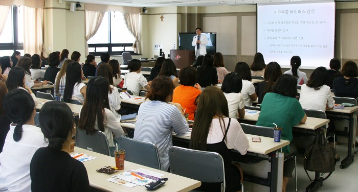 강의는 백신의 예방 가능여부, 종류와 접종 시기 및 부작용 등 평소 병원을 찾는 환자들이 궁금했던 부분들에 대한 내용으로 구성됐다.