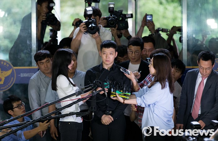 | △ 취재진 질문 답하는 박유천 |