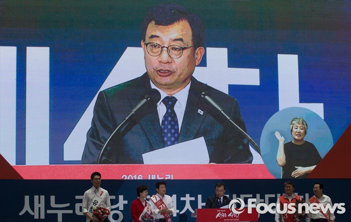 (서울=포커스뉴스) 9일 오후 서울 송파구 잠실실내체육관에서 열린 새누리당 4차 전당대회에서 당대표로 선출된 이정현 의원이 수락연설을 하고 있다.